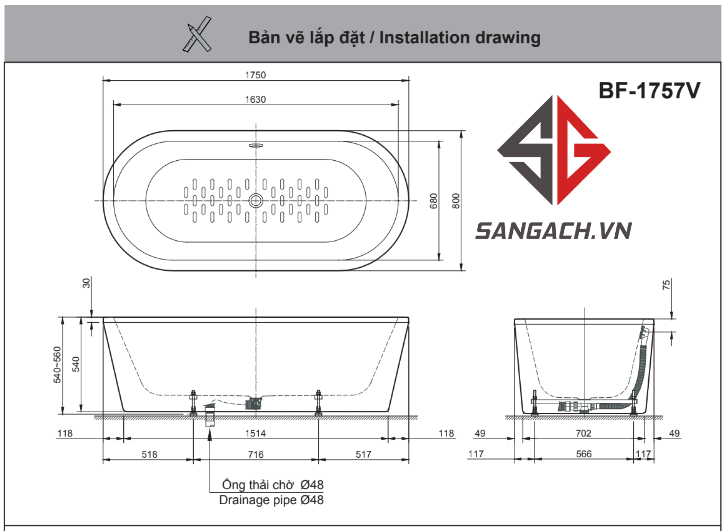Bản vẽ bồn tắm nằm BF-1757 INAX lập thể