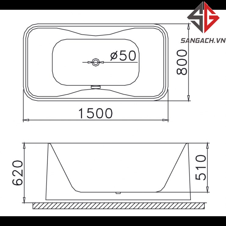 - Kích thước: 1500 x 800 x 620 (dài x rộng x cao)