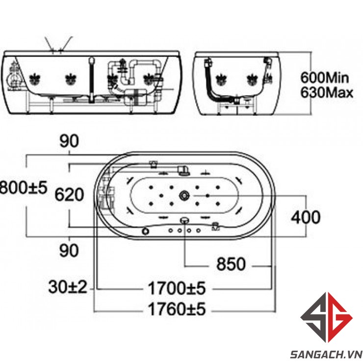 Bản vẽ kĩ thuật bồn tắm American Standard 70192100-WT Acacia