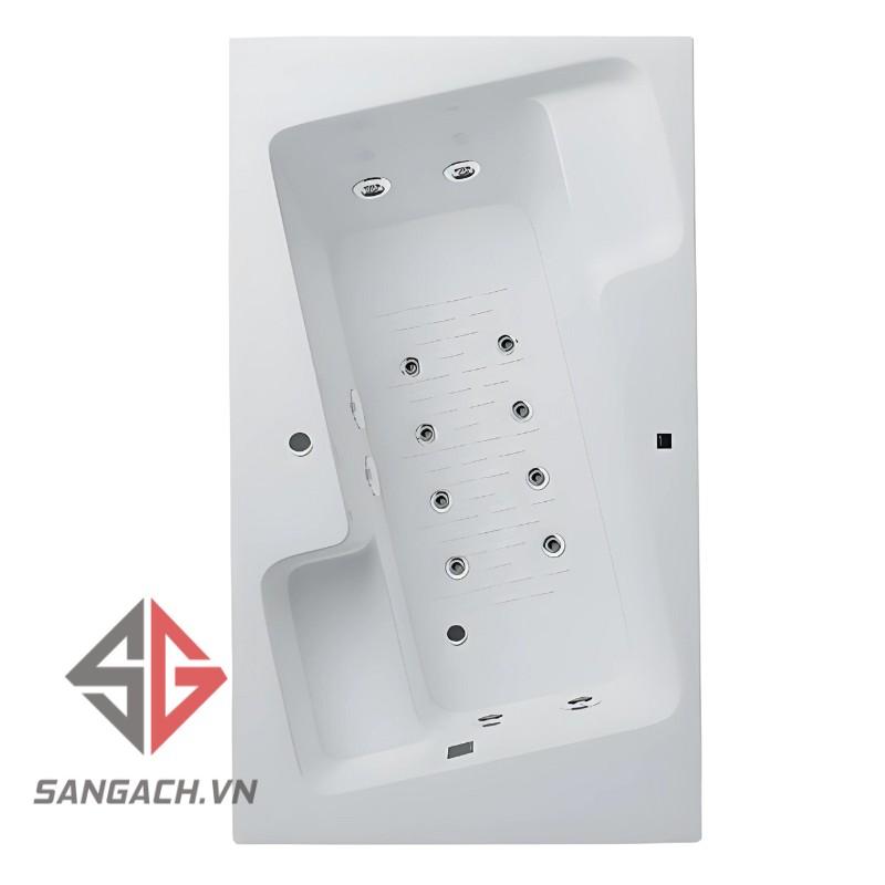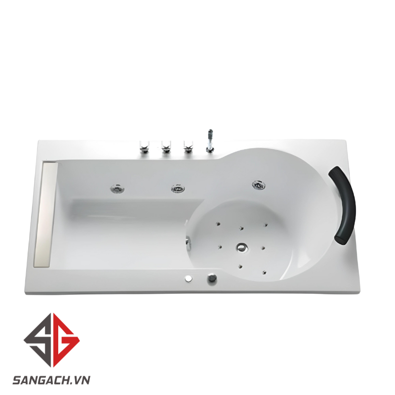 Kích thước của bồn tắm là 1695 x 980 x 645 mm, rất phù hợp với các không gian phòng tắm rộng rãi và hiện đại. Bồn tắm cho phép điều chỉnh giữa hai chế độ massage: sục sóng và sủi bọt, giúp massage nhẹ nhàng khắp cơ thể bạn.