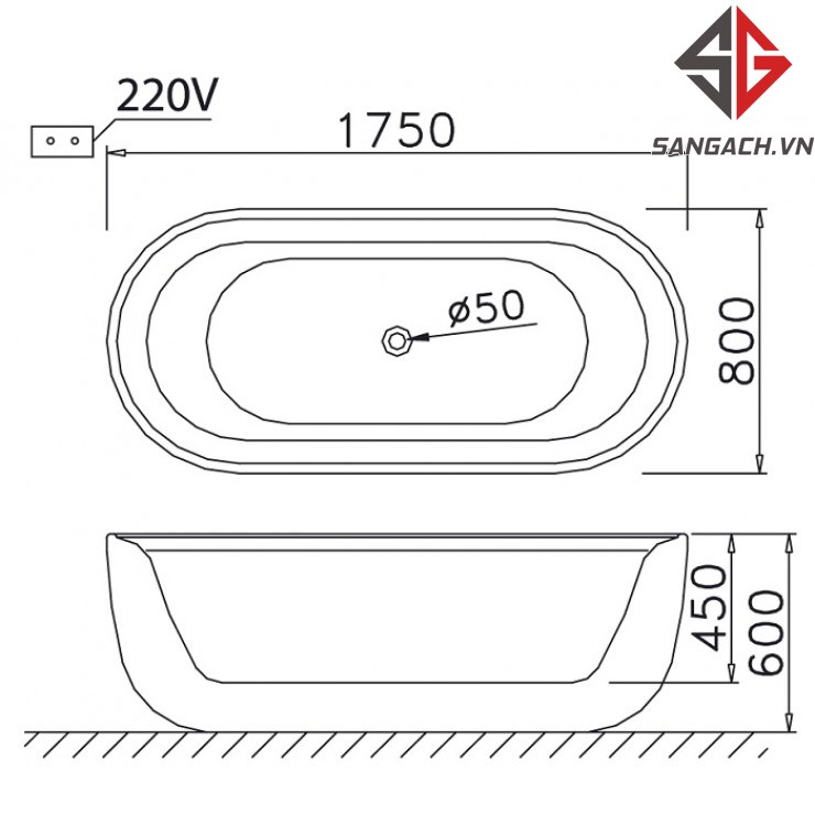 - Kích thước (D x R x C): 1750 x 800 x 600 mm