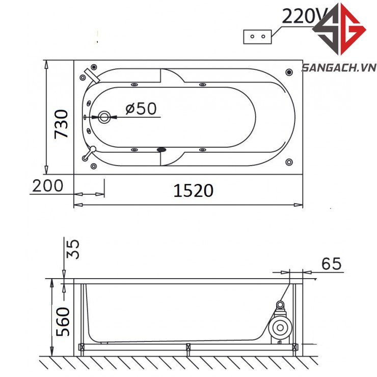 - Kích thước: 1520 x 730 x 560 (dài x rộng x cao)
