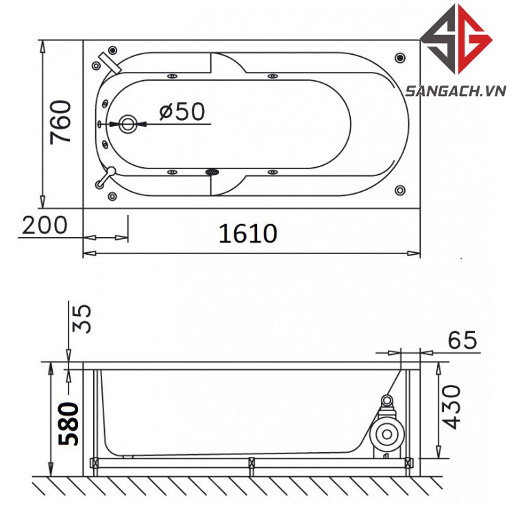 - Kích thước: 1610 x 760 x 580 (dài x rộng x cao)