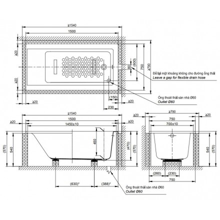 Bản vẽ kỹ thuật bồn tắm TOTO PAY1580D/DB501R-2B
