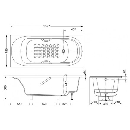 Bản vẽ bồn tắm TOTO PPY1750HPE