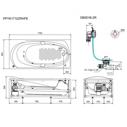 Bồn tắm TOTO PPYK1710ZRHPE#P/DB501R-2B
