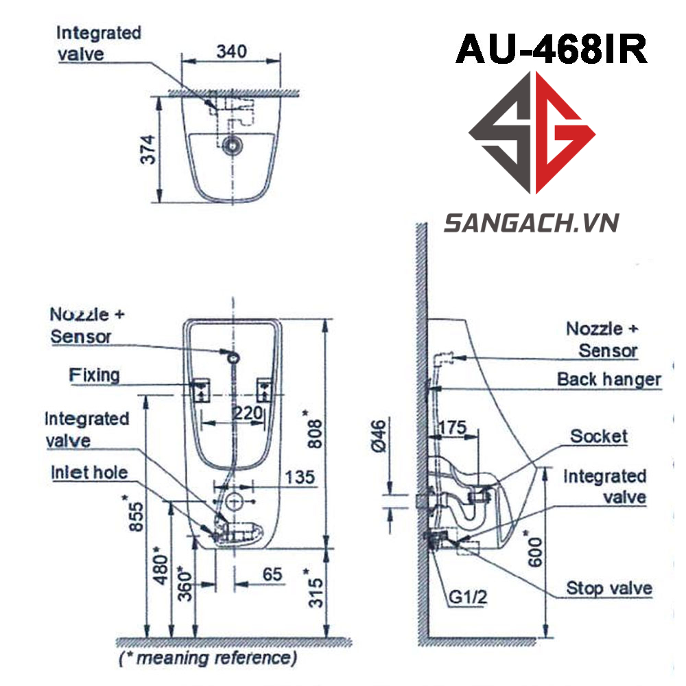 Bản vẽ kích thước bồn tiểu Inax AU 468 IR