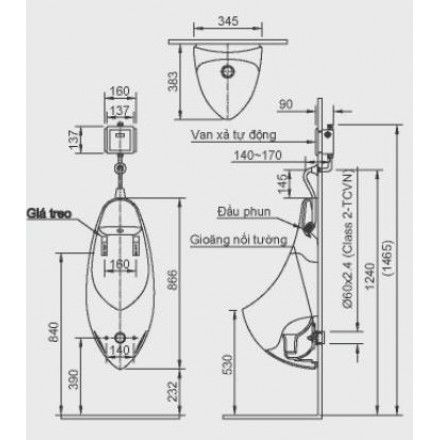 Bản vẽ bệ tiểu nam INAX U-417V