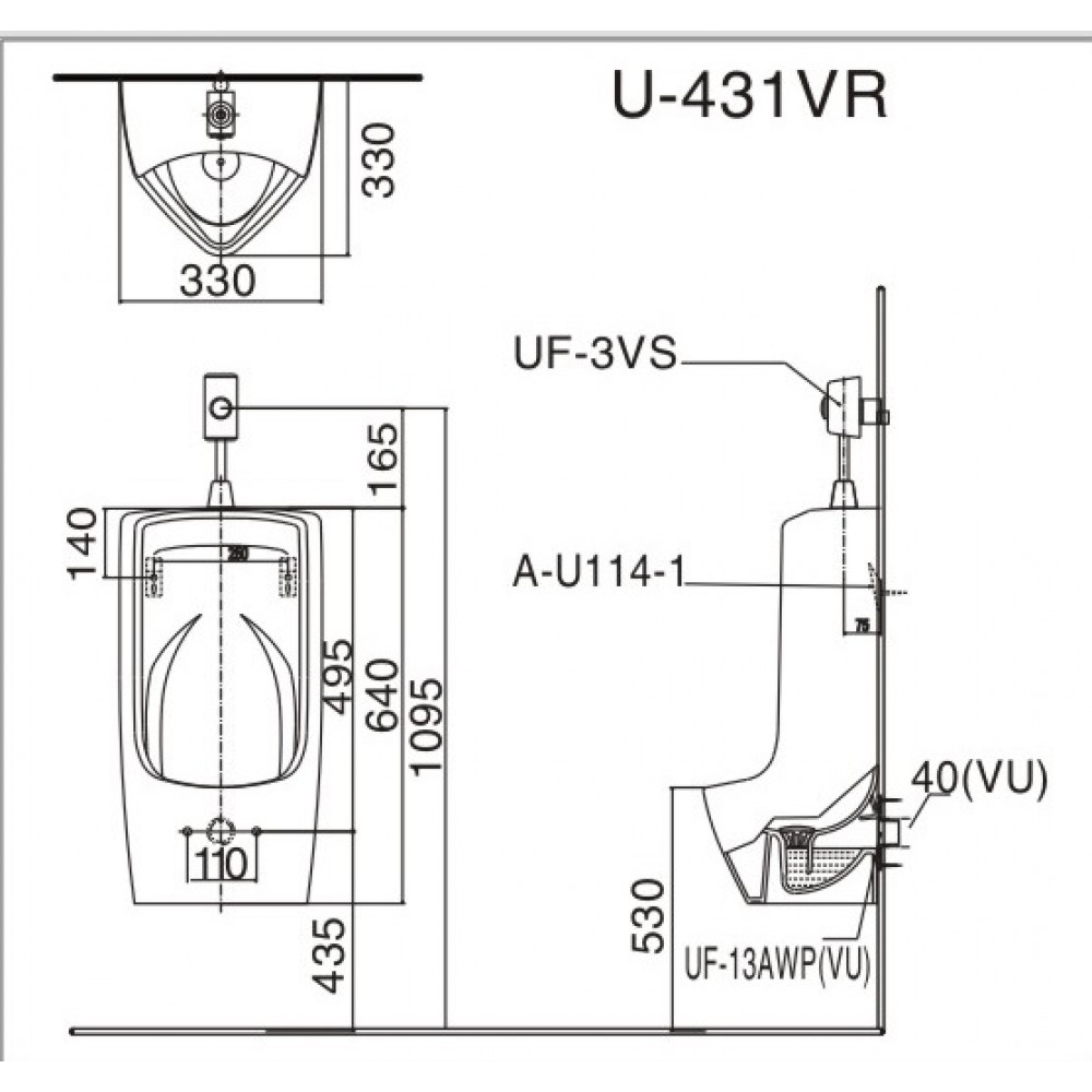 Bản vẽ bệ tiểu nam INAX U-431VR