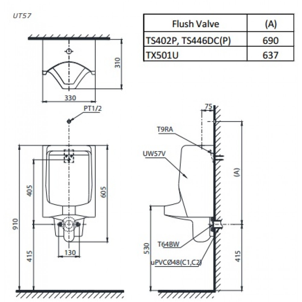 Bản vẽ bồn tiểu nam TOTO UT57S