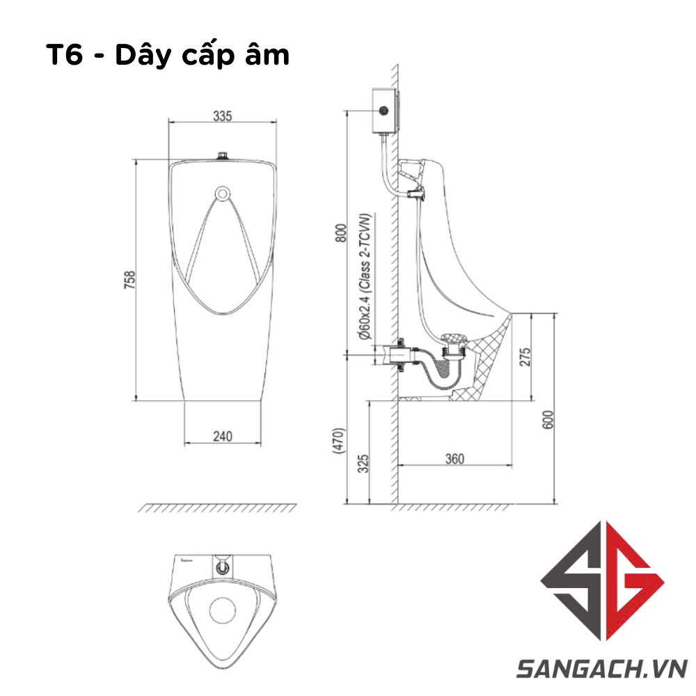 Bản vẽ kích thước tiểu nam T6 Cấp Âm Viglacera: