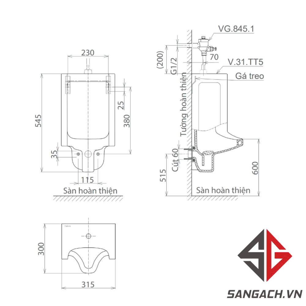 Hướng dẫn lắp đặt và sử dụng Bồn Tiểu Nam Viglacera TT5 Treo Tường: