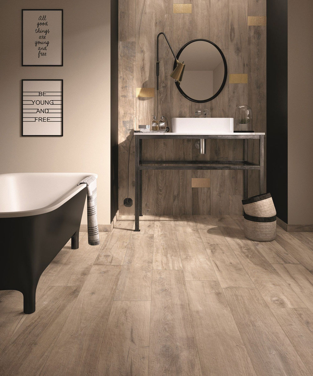 Gạch vân gỗ tự nhiên được dùng ốp chân tường thường cùng màu với gạch lát nền. Loại len tường này rất phổ biến trong những không gian ấm cúng như phòng ngủ, phòng thờ với ưu điểm là độ bền cao hơn gỗ tự nhiên và dễ vệ sinh.