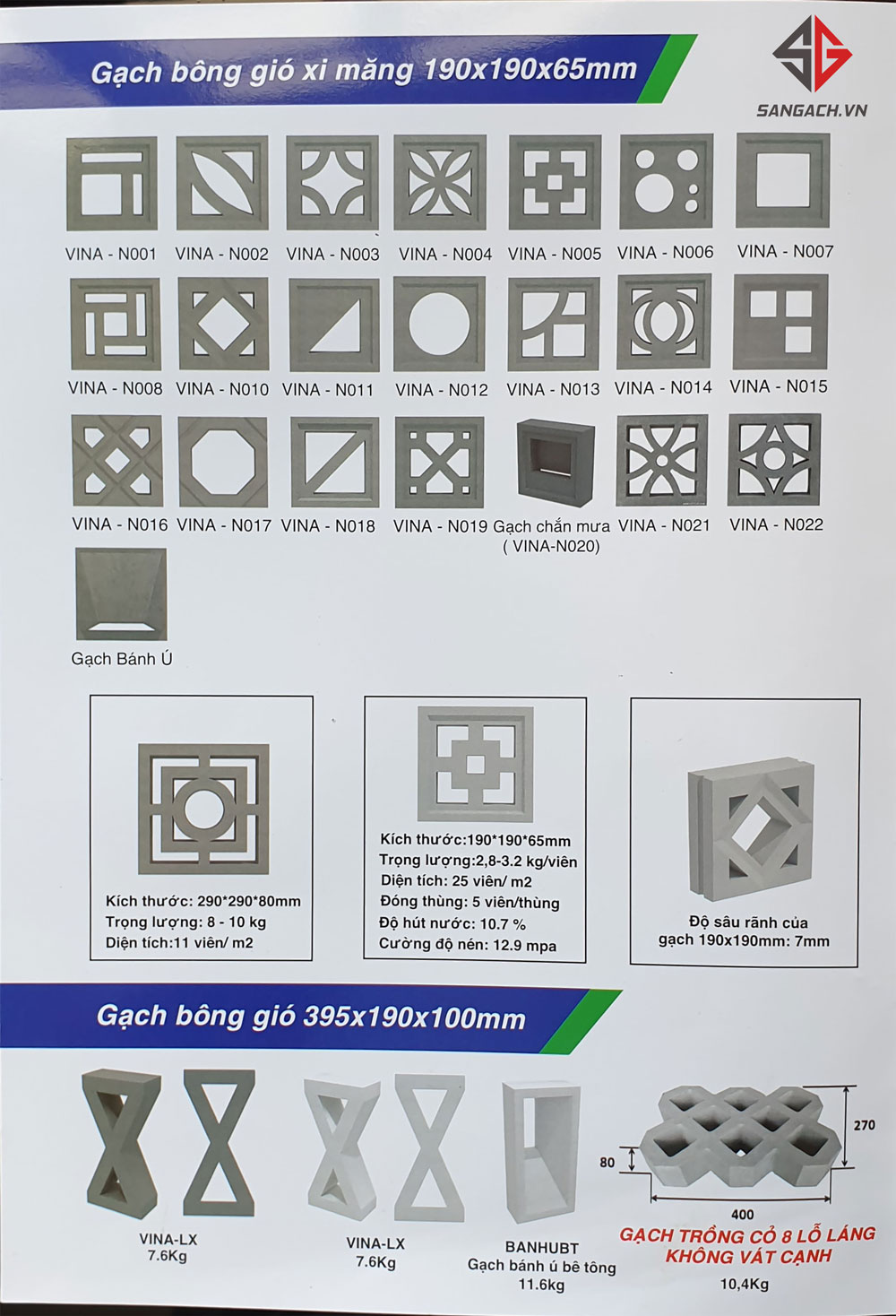 Catalogue gạch bông gió Vinatiles và các sản phẩm bê tông