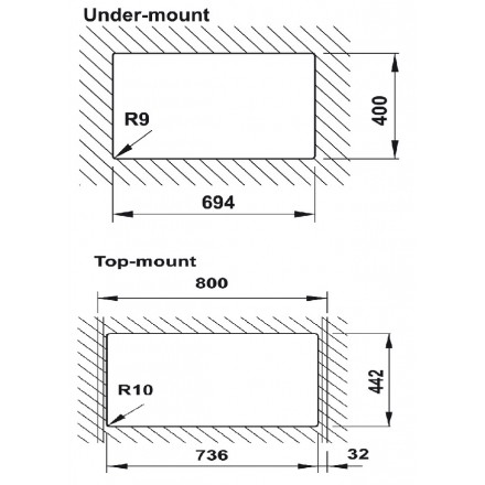 - Lắp nổi 736L x 442R mm
