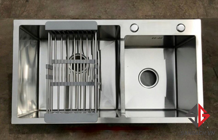 CHẬU CHÉN 2 HỘC INOX 201 LỆCH 82X45 SAGA CR34: