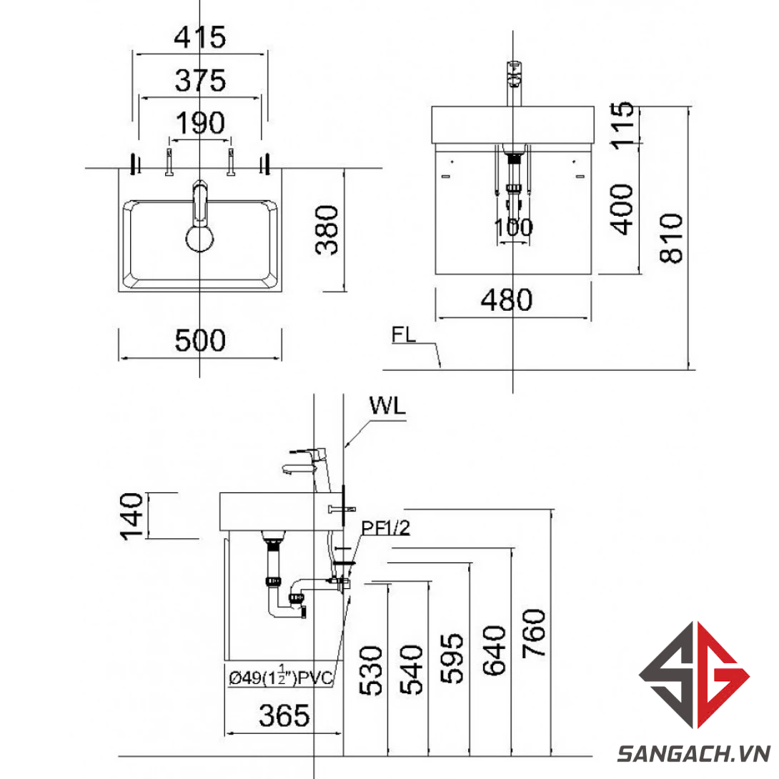 Bản vẽ kỹ thuật chậu Caesar LF5259