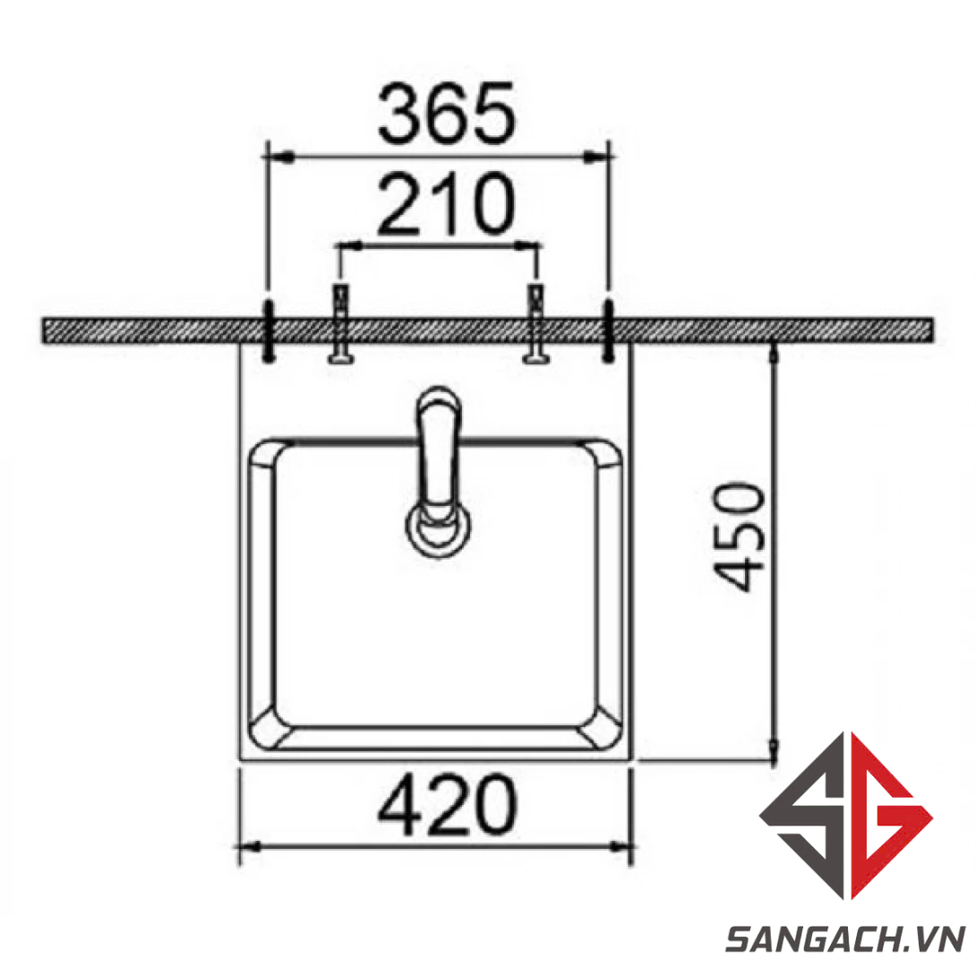 Bản vẽ kích thước chậu rửa Caesar L5261