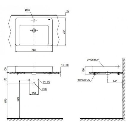 Bản vẽ kỹ thuật chậu rửa TOTO LT951C đặt bàn