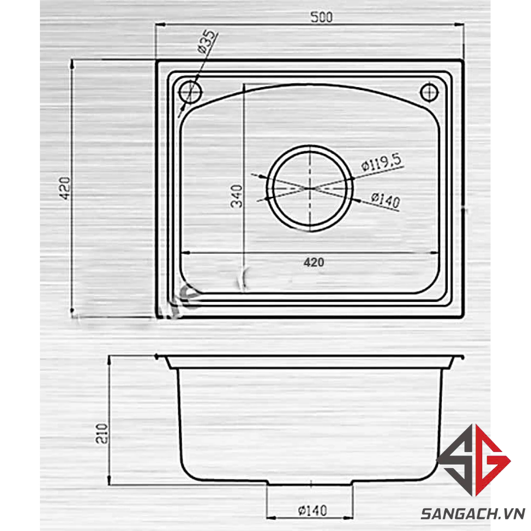 Chậu Rửa Chén Sơn Hà S50D Inox 304 1 Hộc: