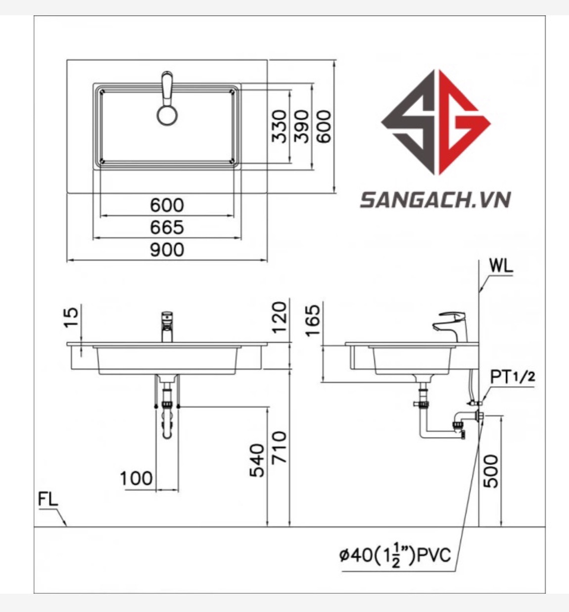 Bản vẽ kỹ thuật Chậu Rửa Lavabo Âm Bàn CAESAR LF5130 Chữ Nhật: