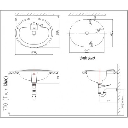 Bản vẽ kỹ thuật Chậu Rửa Lavabo Âm Bàn INAX AL-2395V Dương Vành: