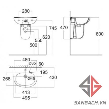 Lavabo treo tường American Standard VF-0947/VF-0741