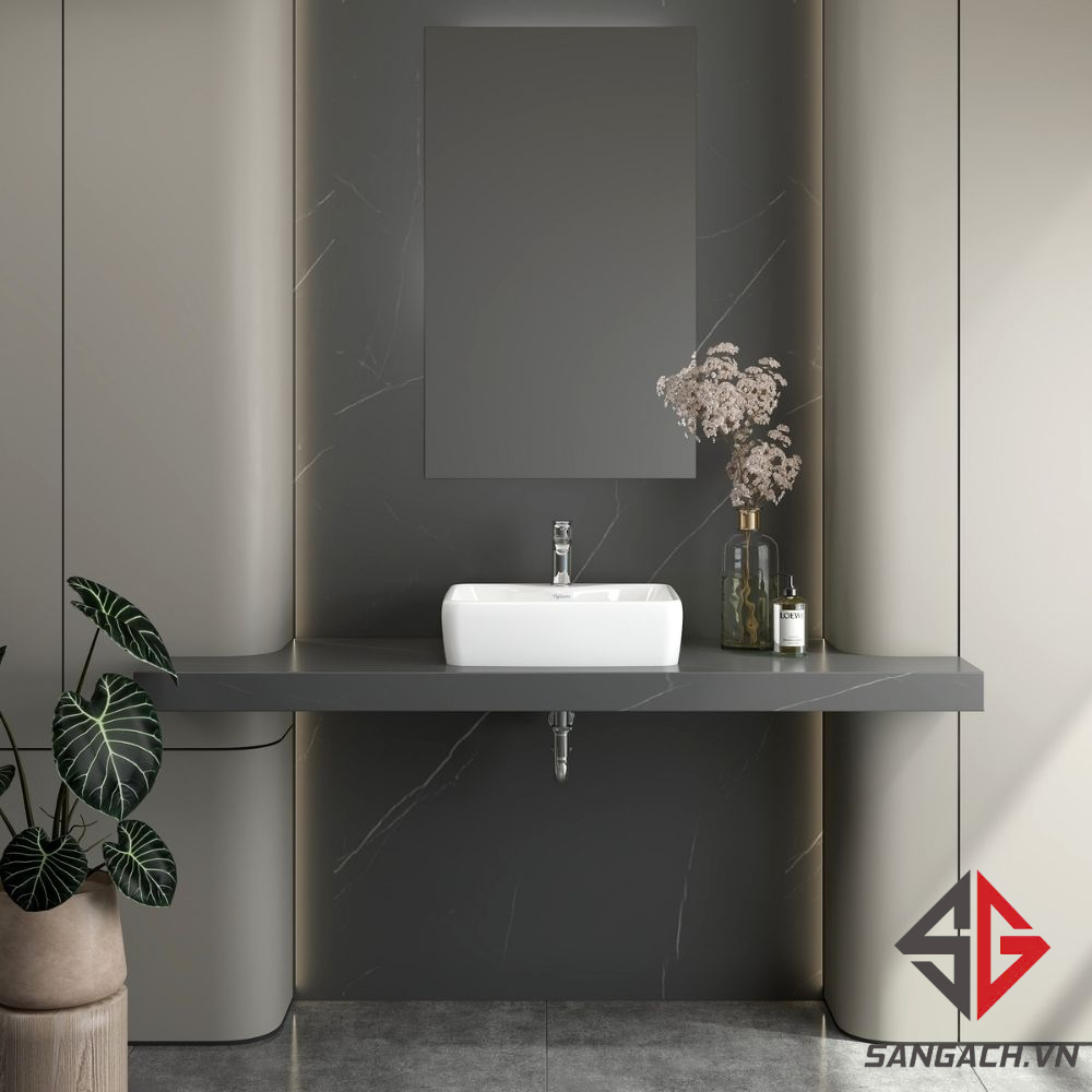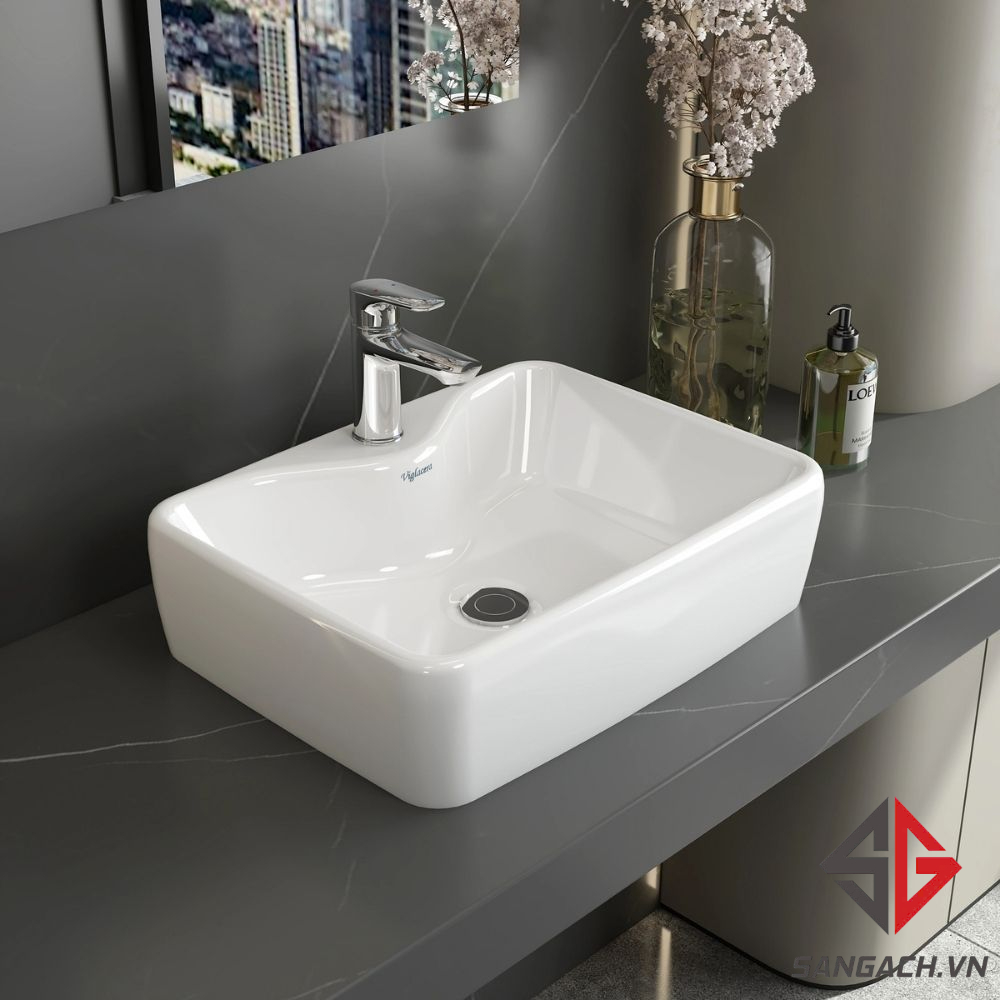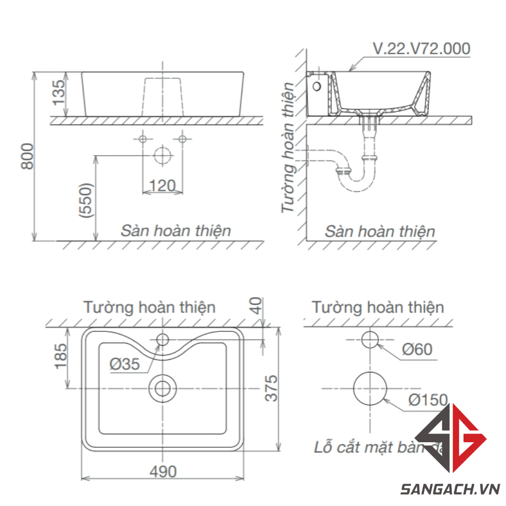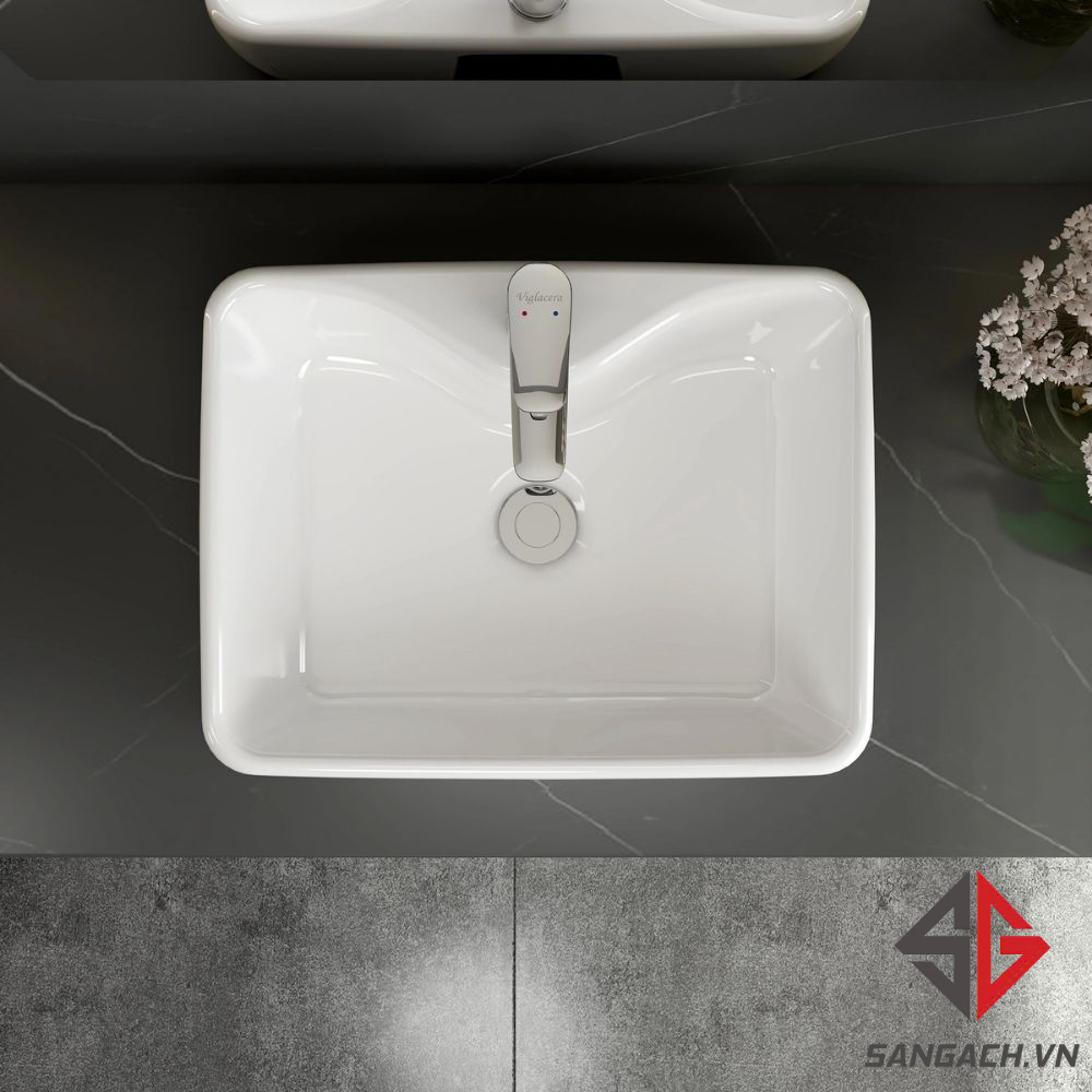 Bản vẽ kích thước lavabo đặt bàn Viglacera V72 chữ nhật: