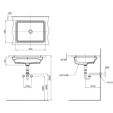 Bản vẽ kỹ thuật chậu rửa TOTO LT1515 âm bàn