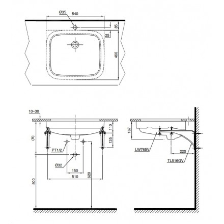 Bản vẽ kỹ thuật chậu rửa TOTO LT765 âm bàn