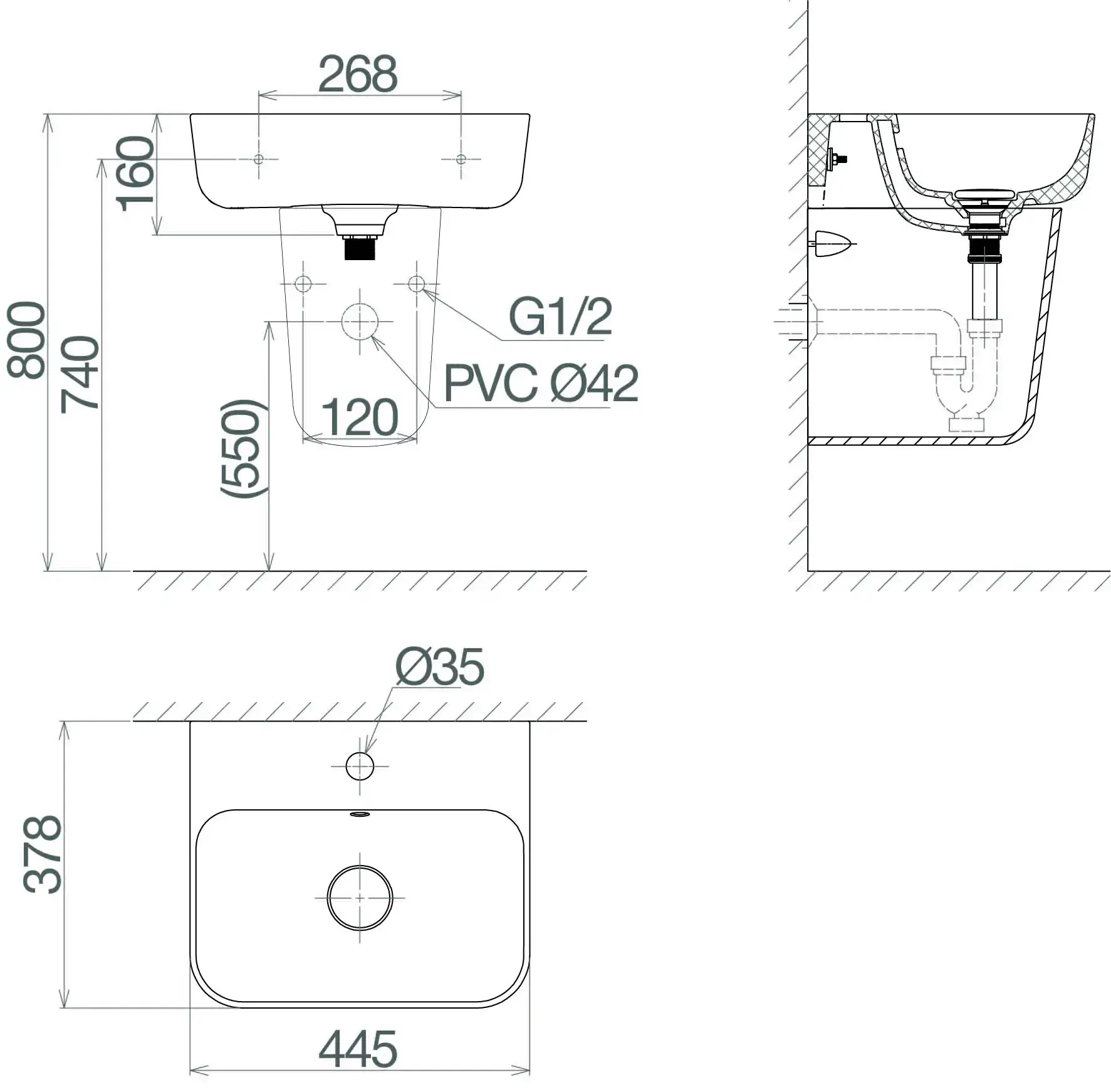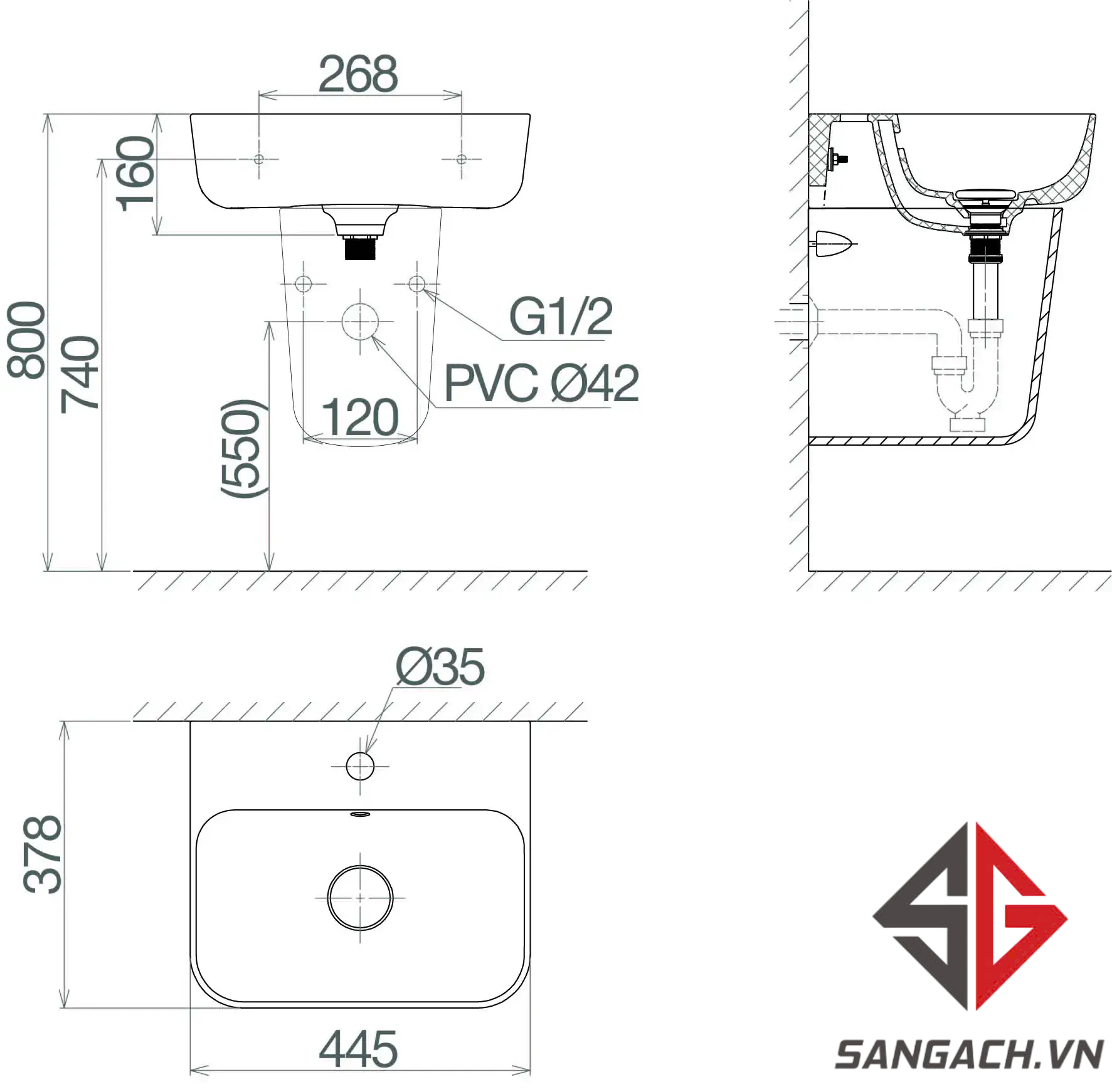 Bản vẽ và hướng dẫn sử dụng của Chậu Rửa Lavabo Viglacera V23 treo tường: