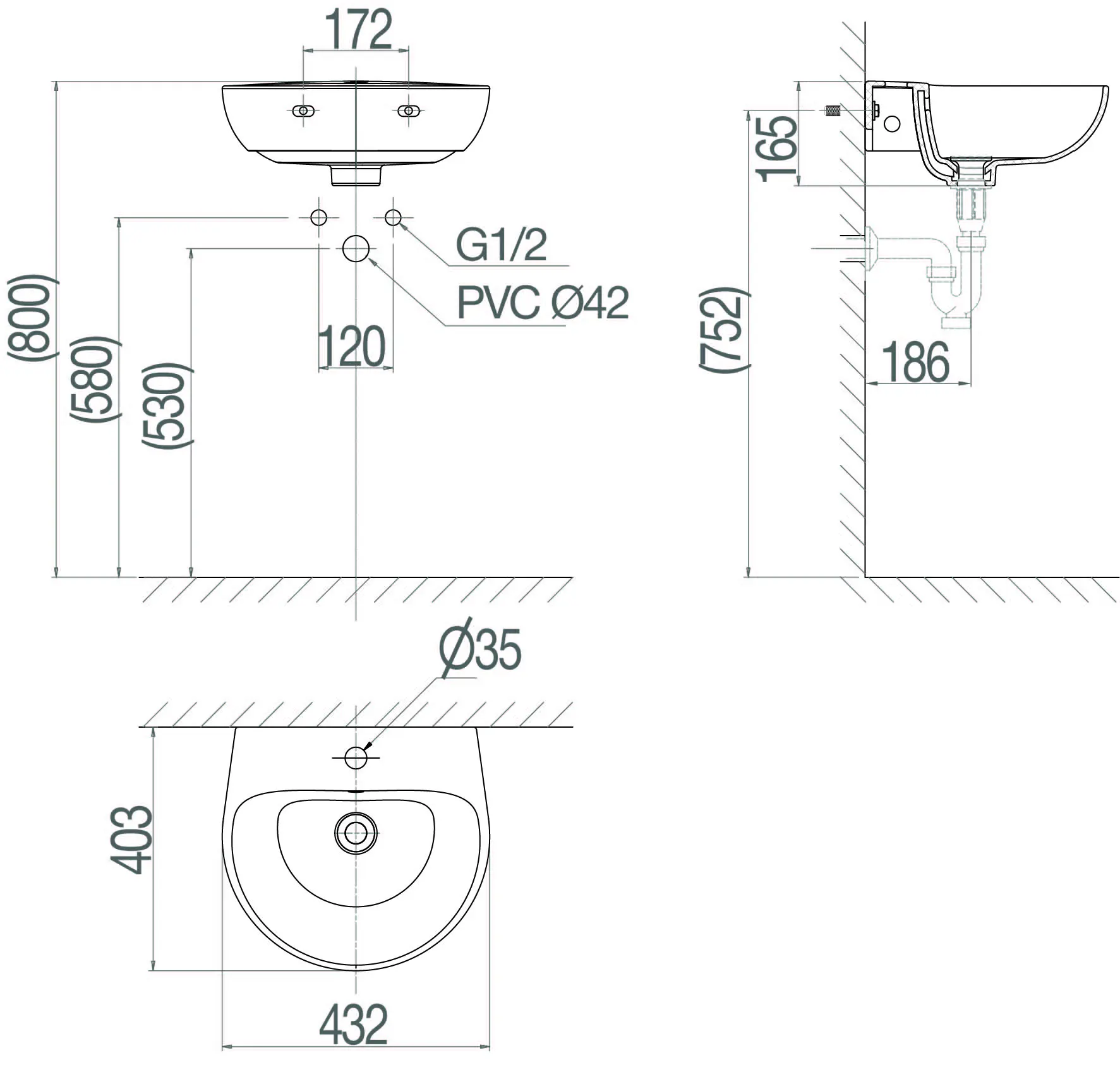 Bản vẽ kích thước lavabo V523 Viglacera:
