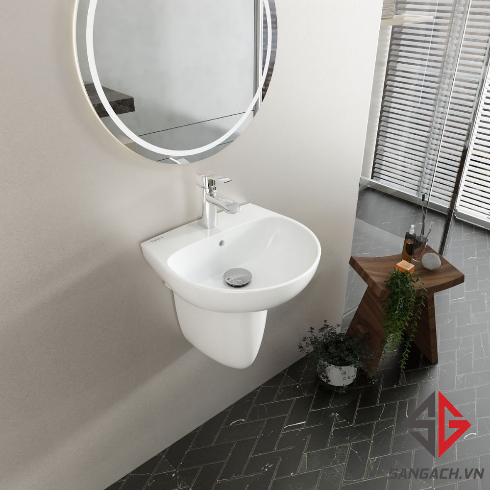 • Chậu rửa lavabo Viglacera treo tường chân lửng đến từ thương hiệu thiết bị vệ sinh Viglacera