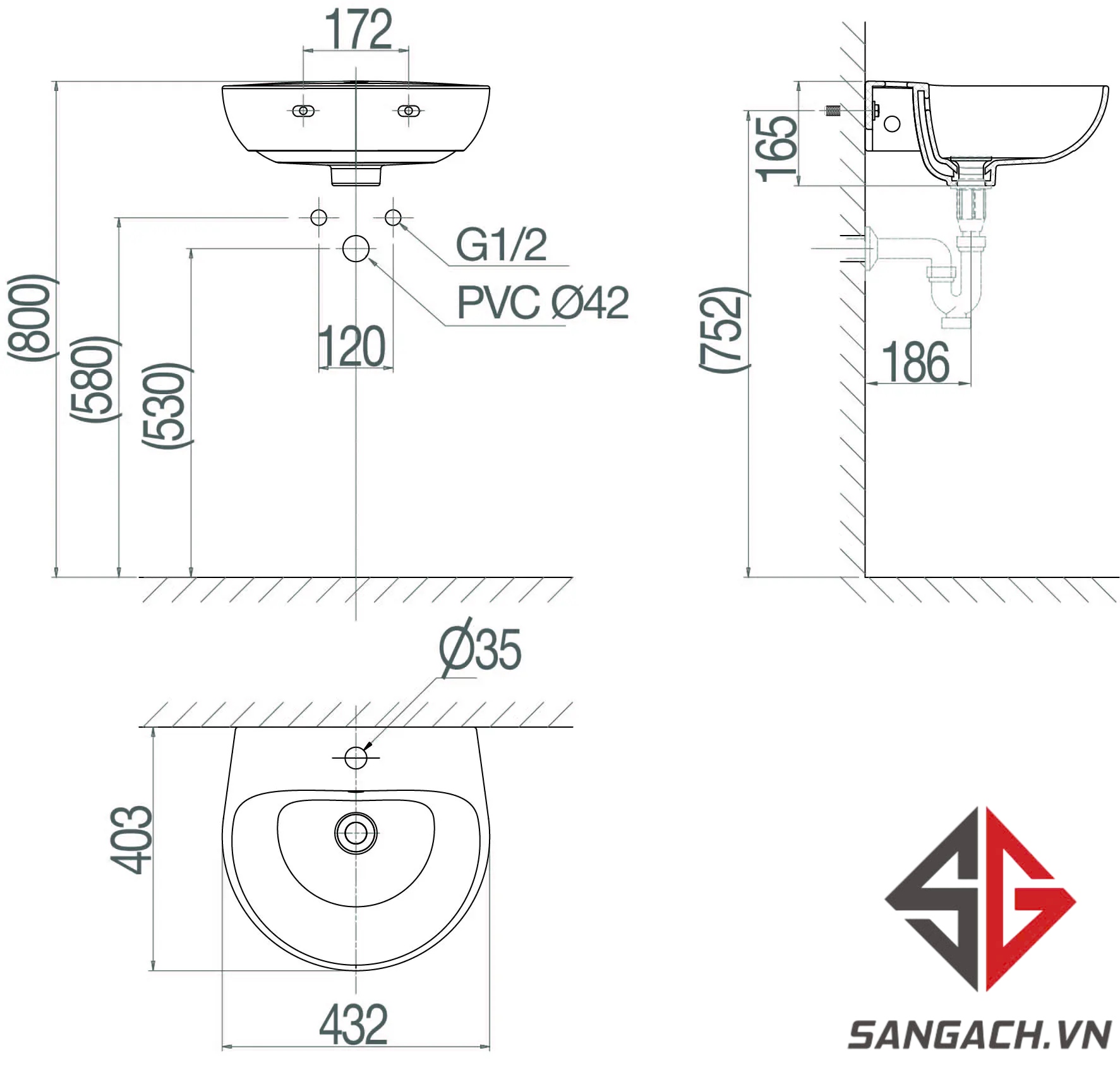 Thông tin chậu rửa lavabo Viglacera V523 treo tường: