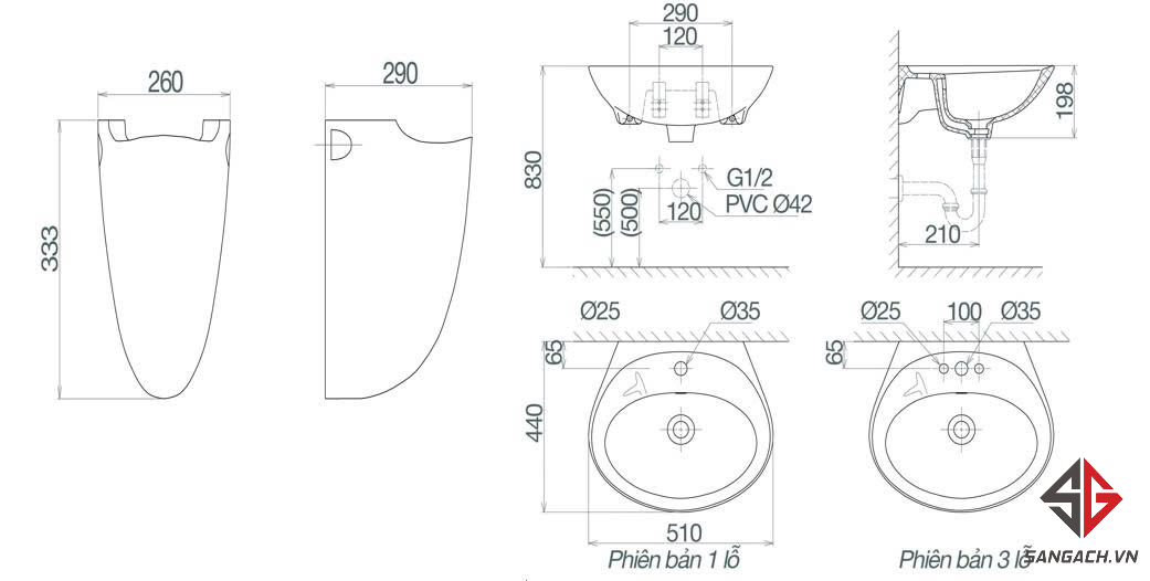 Hướng dẫn sử dụng của Chậu Lavabo Viglacera VTL2/BS503 treo tường:
