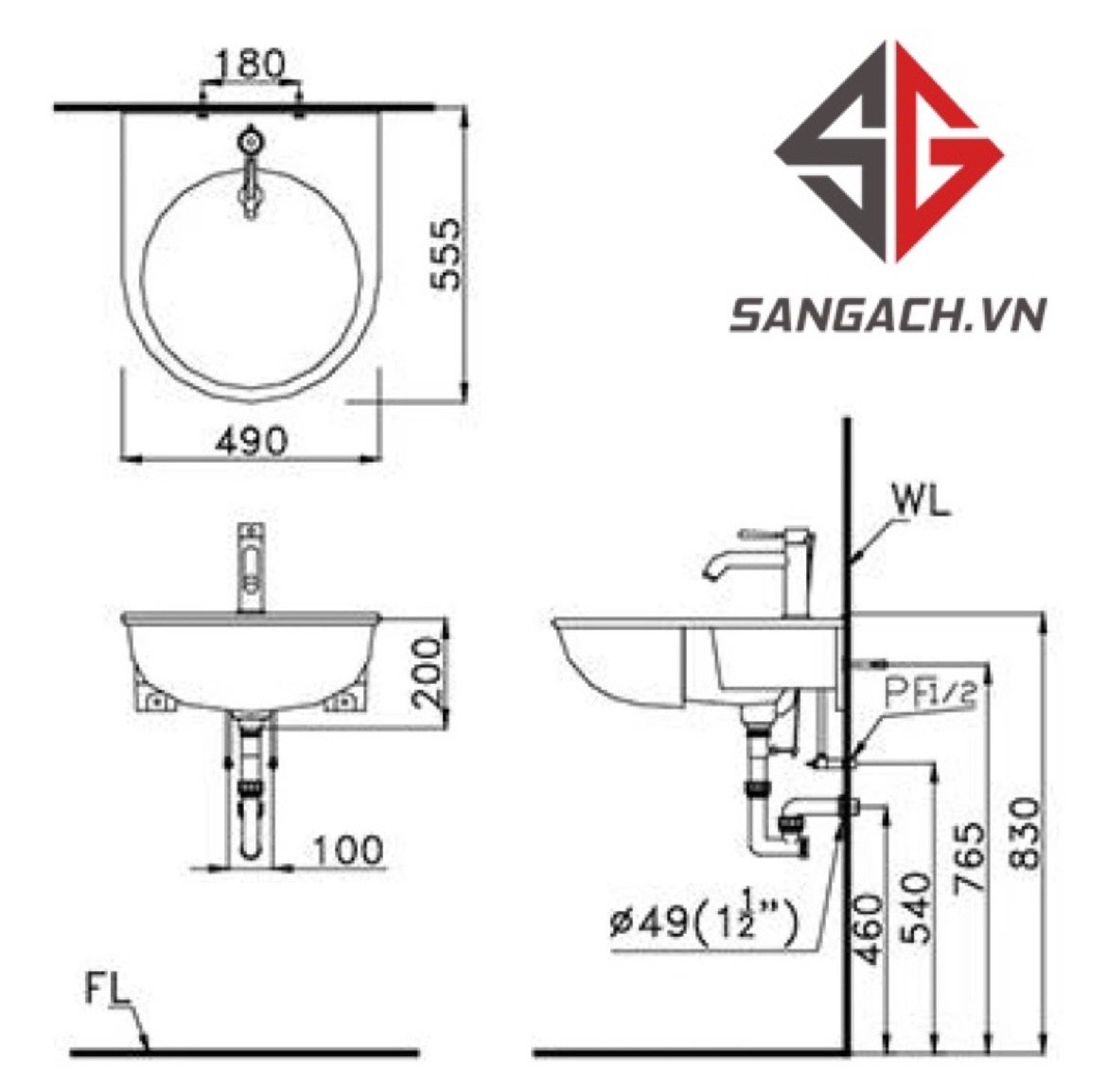 Bản vẽ kỹ thuật Chậu Rửa Mặt Lavabo CAESAR LF5302 Bán Dương :