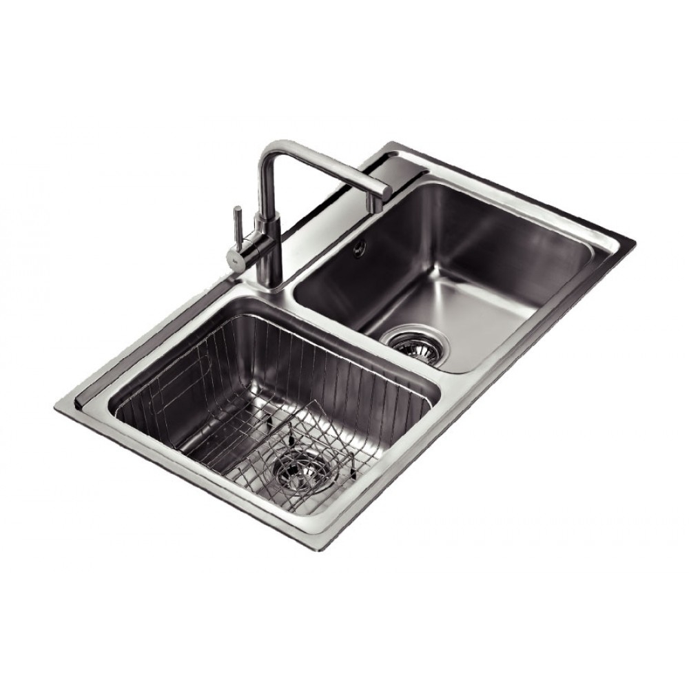 - Chậu gồm 2 hộc rửa được thiết kế độc đáo với chất liệu thép không gỉ AISI 304, bền đẹp, dễ dàng lâu chùi vệ sinh, chậu lắp nổi cùng với những đường nét tinh tế sẽ tạo nên sự sang trọng cho căn bếp nhà bạn