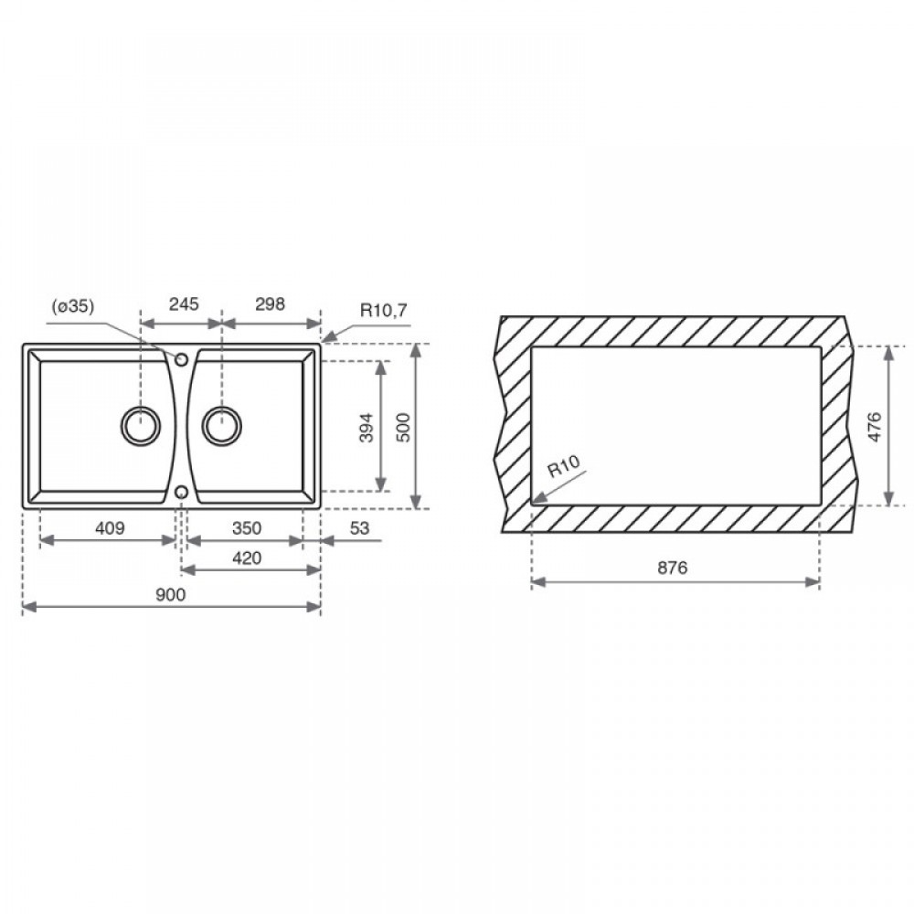 Bản vẽ kỹ thuật chậu rửa chén bát Teka UNIVERSO 90 GT 40141222