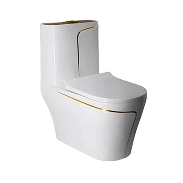 - Bồn cầu nguyên khối viền vàng