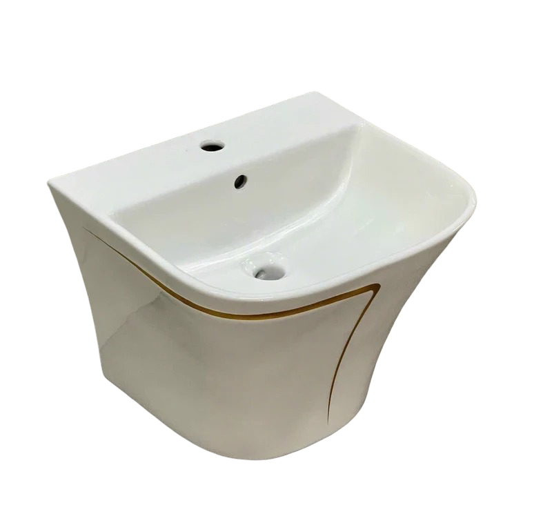 - Lavabo treo nguyên khối viền vàng