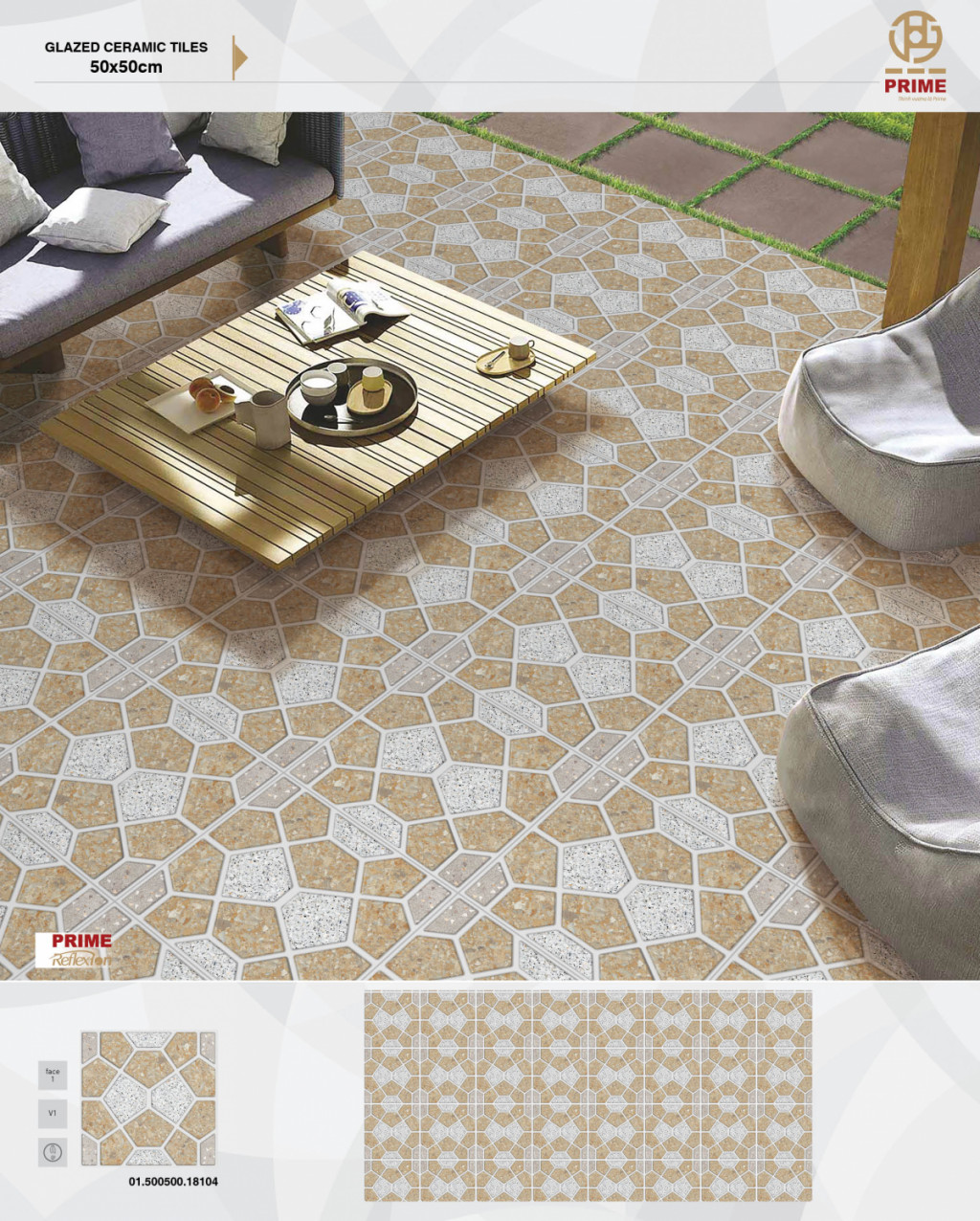 Gạch lát nền Prime 50x50 18104 được ứng dụng công nghệ tiên tiến nổi trội và thiết kế theo xu hướng mới nhất. Nhà máy sản xuất Prime trên quy mô lớn với dây chuyền thiết bị hiện đại. Tuân thủ và đạt chuẩn hệ thống quản lý quốc tế và về chất lượng sản phẩm. Thiết kế phong phú, đa dạng luôn cập nhật mang tính thẩm mỹ cao, mang lại không gian sang trọng cho gia đình bạn.