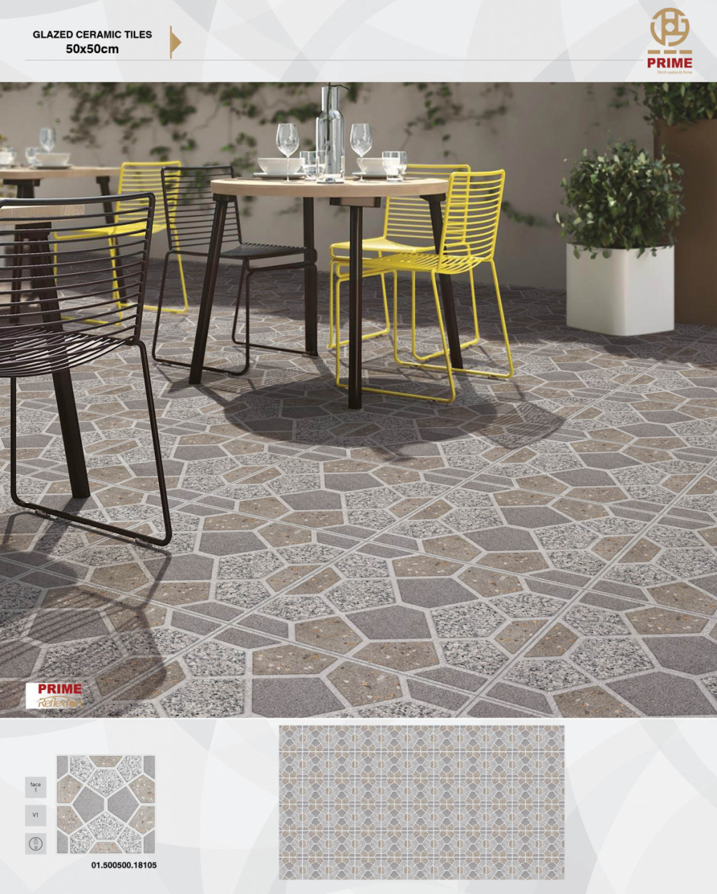 Gạch lát nền Prime 50x50 18105 được ứng dụng công nghệ tiên tiến nổi trội và thiết kế theo xu hướng mới nhất. Nhà máy sản xuất Prime trên quy mô lớn với dây chuyền thiết bị hiện đại. Tuân thủ và đạt chuẩn hệ thống quản lý quốc tế và về chất lượng sản phẩm. Thiết kế phong phú, đa dạng luôn cập nhật mang tính thẩm mỹ cao, mang lại không gian sang trọng cho gia đình bạn.