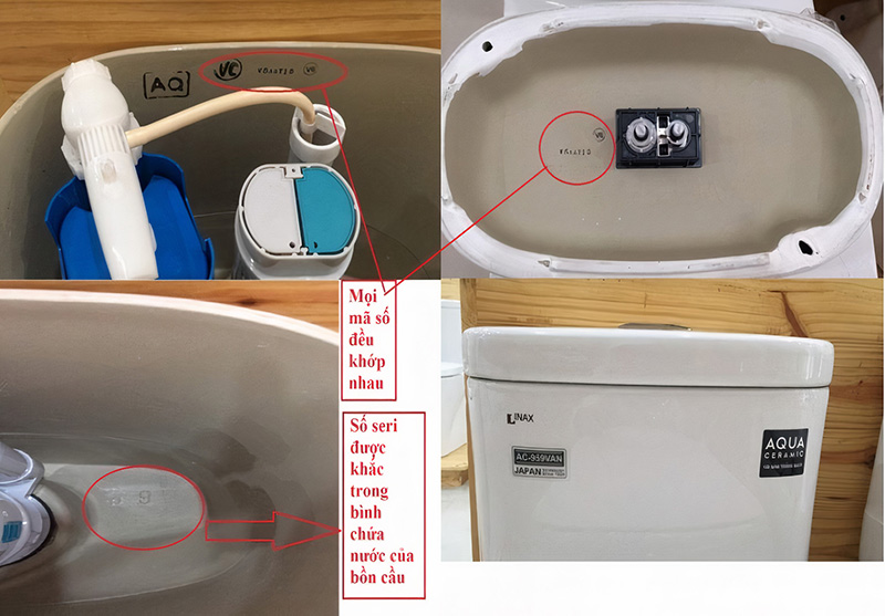 Các sản phẩm sứ của Inax đều có sự đồng bộ về Series. Chẳng hạn, với một mẫu bồn cầu sứ, bên dưới nắp két nước, đáy két nước và phía trong bình chứa nước bồn cầu đều có một mã Series thống nhất. Nếu quý khách kiểm tra mà thấy Series không đồng bộ thì có thể liên hệ ngay với các đại lý thiết bị vệ sinh Inax Bình Dương để được bảo hành.