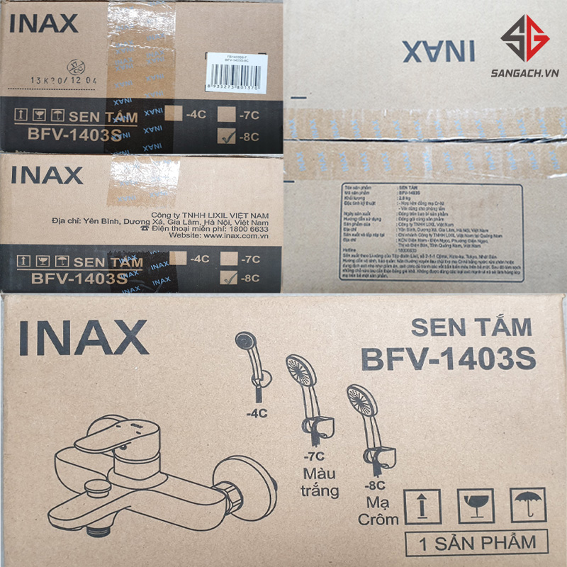 Hộp đóng gói sản phẩm của Inax được in đầy đủ thông tin về mẫu mã, chủng loại sản phẩm, nơi sản xuất