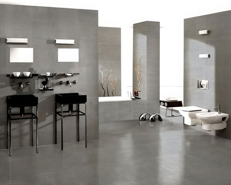 Phối cảnh nhà vệ sinh gạch lát nền 40x40 Taicera G49001