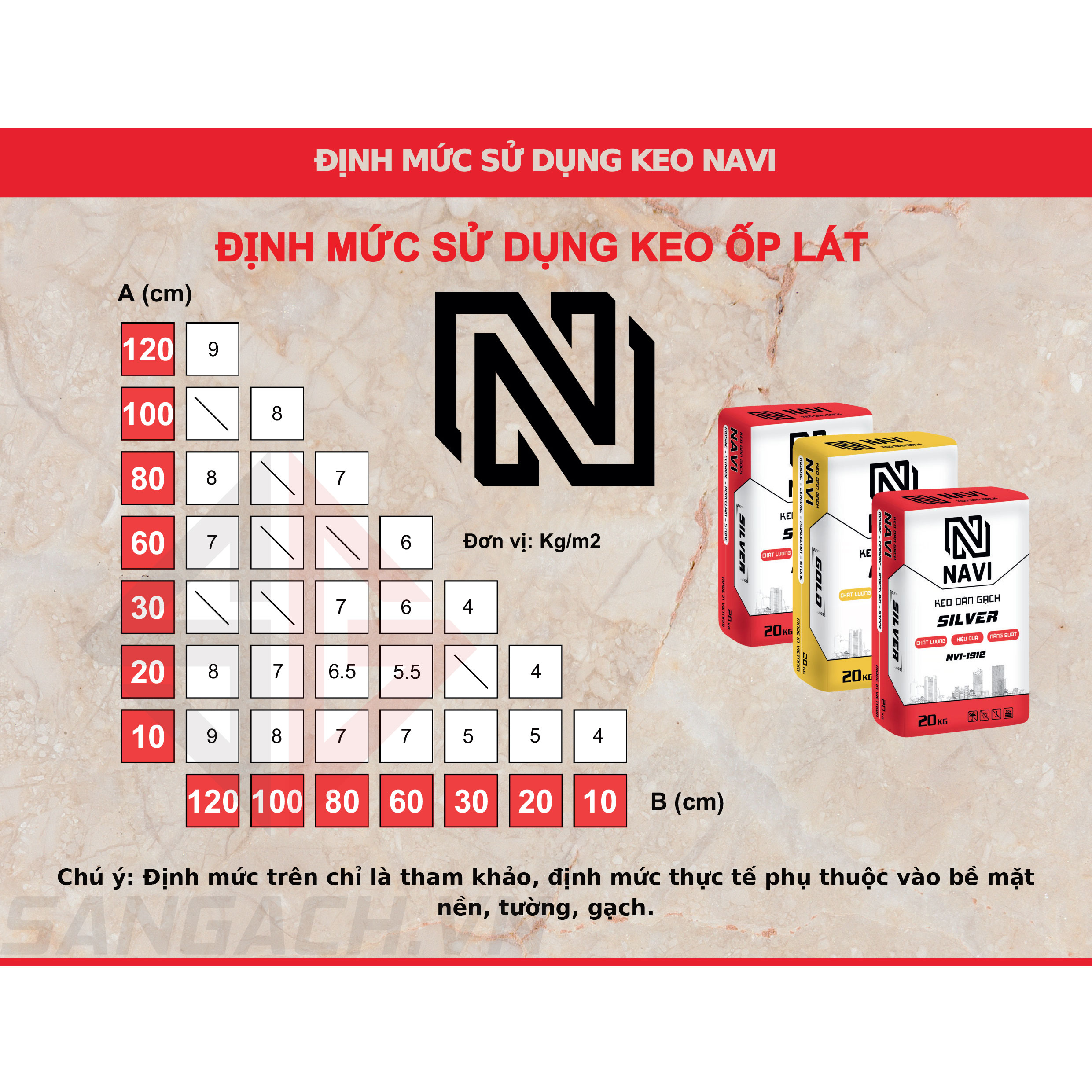 - Trung bình 5 kg Keo/1 m² Gạch