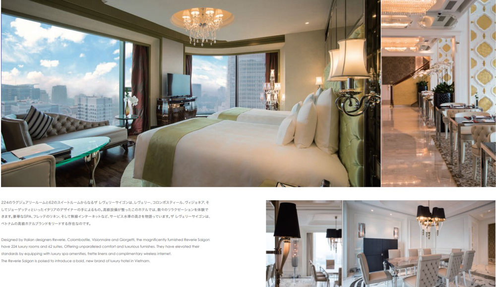 Được thiết kế bởi những nhà nghệ sĩ tài năng đến từ Italy như Reverie, Colombostile, Visionnaire và Giorgetti, The Reverie Saigon khoát lên mình vẻ đẹp lộng lẫy với nội thất cổ điển, phong cách đặc trưng của Châu Âu. Khách sạn có 224 phòng hạng sang, có cửa sổ kính nối từ trần tới sàn. Thiết kế tinh tế mang đến sự phóng khoáng kết hợp với đồ nội thất sang trọng khiến lữ khách như lạc vào xứ sở kiêu kỳ của những tập phim Holywood nổi tiếng. Ngoài ra, quý khách còn có thể trải nghiệm các dịch vụ tiện nghi tiêu chuẩn 6 sao tại nơi đây như: