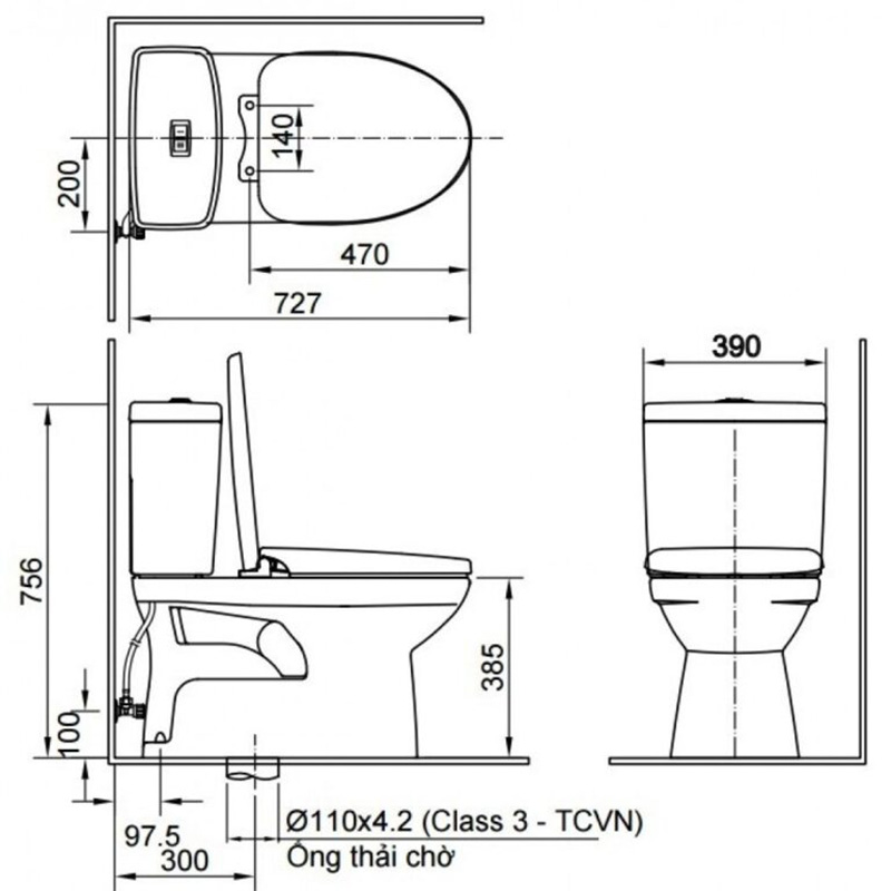 Thông số kỹ thuật kích thước bàn cầu 2 khối
