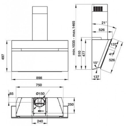 Bản vẽ kỹ thuật máy hút mùi âm bàn 539.89.335 Hafele