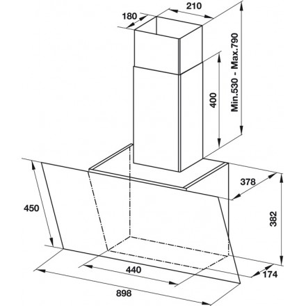 Bản vẽ kỹ thuật máy hút mùi gắn tường 533.89.013 Hafele